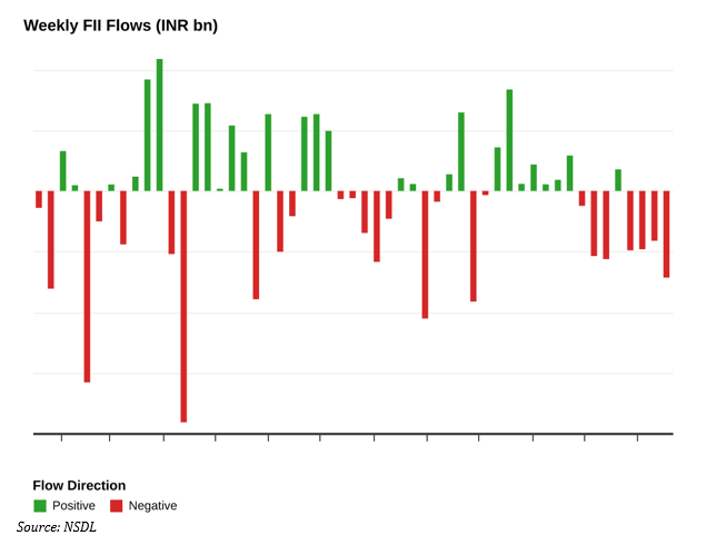 Foreign institutional sentiment remained cautious in the week ended on January 16, 2026, with net outflows widening sharply to INR 143.06 billion compared to INR 82.27 billion in the previous week, reflecting sustained risk aversion amid fragile market conditions and continued pressure across core asset classes, particularly equities and debt.