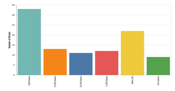 As of the end of last month, nearly 33 stocks were more than 20% away from their 52-week highs. Around 43 stocks were within 10% of their 52-week highs, with L&T Finance Ltd, Bank of Maharashtra, and IDFC First Bank Ltd being the closest.