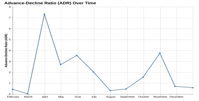 In Dec 2025, the market breadth was negative. 37 stocks advanced while 63 stocks declined. This was significantly worse than the previous month, with the advance-decline ratio falling from 0.72 to 0.59.